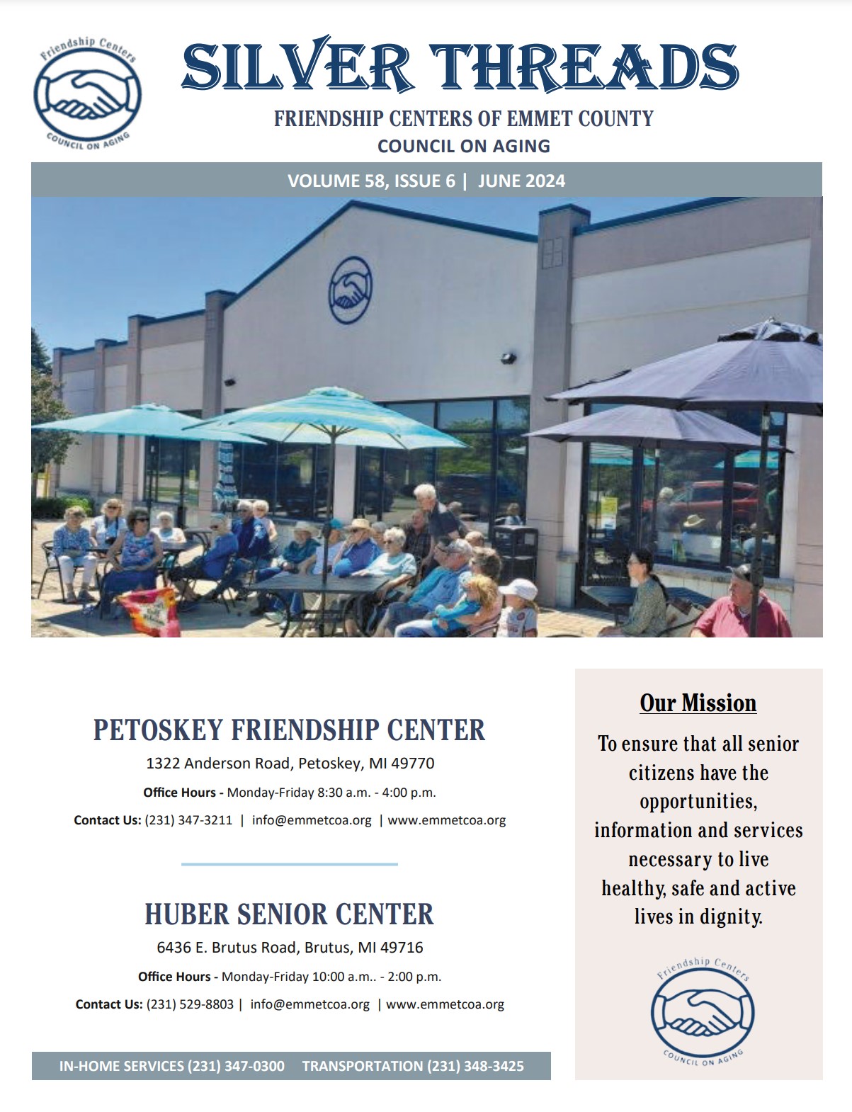 Our buses travel throughout Emmet County. Let us be your “moving billboard”. Or reach senior consumers through our Silver Threads monthly publication.